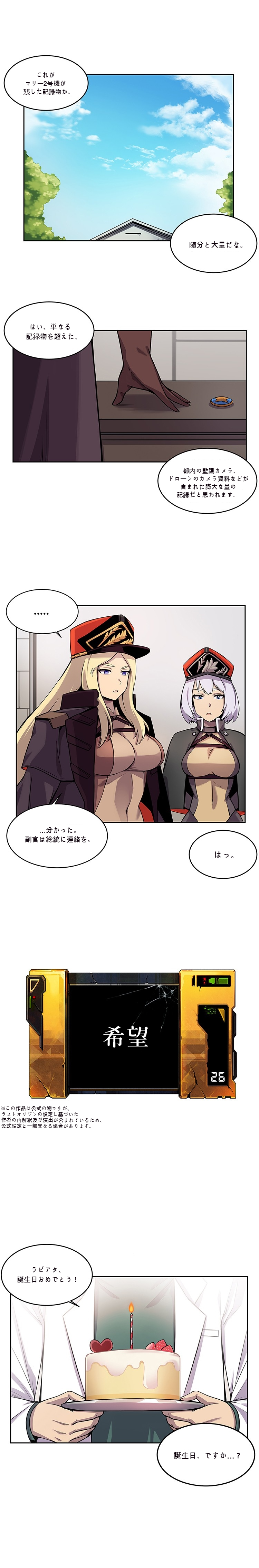 滅亡前のとある記録 第26話-希望(完) ふつつかな翻訳ですが それを通してラスオリの魅力を楽しんで頂く方々のおかげで 完結までやってこれました。本当にありがとうございました。 来週木曜から始まるウェヒヒさんの公式漫画もやっていくつもりなので、 これからもよろしくお願いします! 滅亡前のとある記録(完) 2020.10.08
